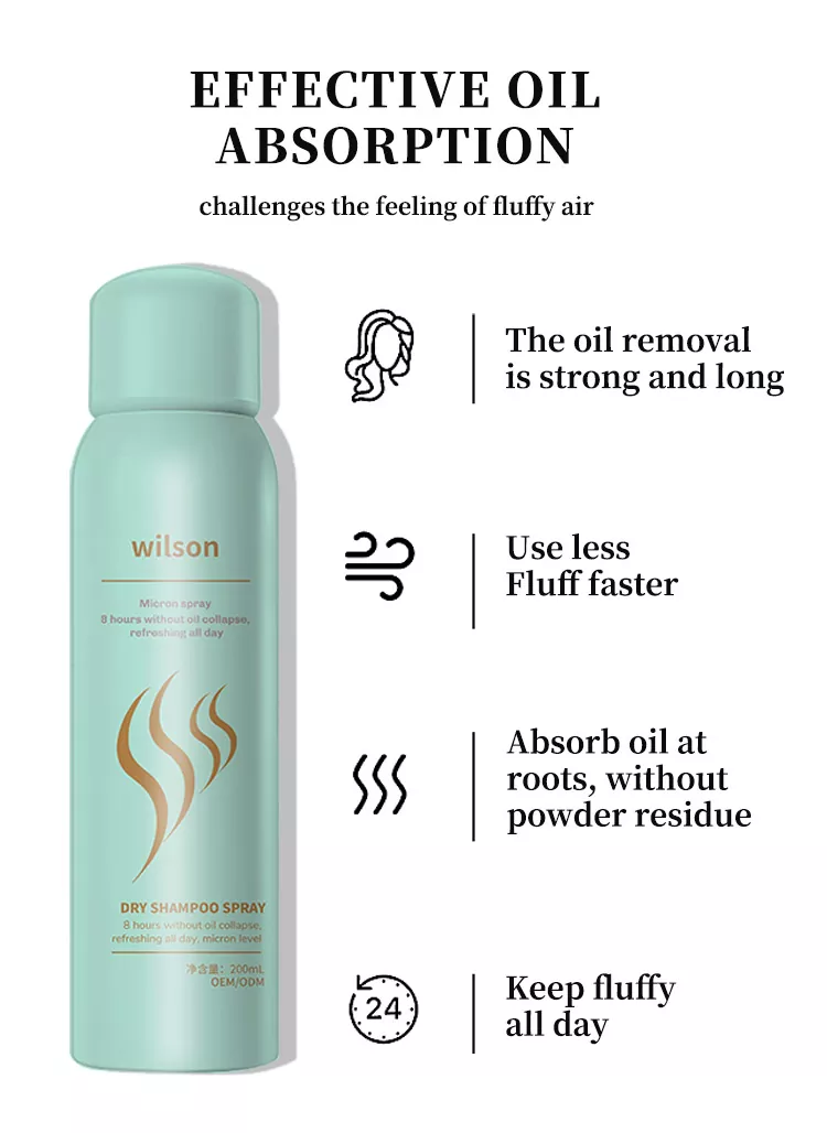 اسپری شامپو خشک خنک بدون شستشوی فوری Wilson بسیاری از سرهای روغن را نجات داده است به طور موقت نمی تواند مشکل مو را شستشو دهد، ماده اولیه اصلی نشاسته برنج است، نشاسته دارای ساختار متخلخل، قابلیت جذب است، یک ماده خام جذب رطوبت معمولی است، می تواند به طور موثر چربی اضافی روی پوست سر را جذب کند و مقداری از اشعه مو را تسهیل کند و به حذف کثیفی موها کمک کند. محصولات از مو پس از استفاده احساس تازگی و طبیعی کنید.
