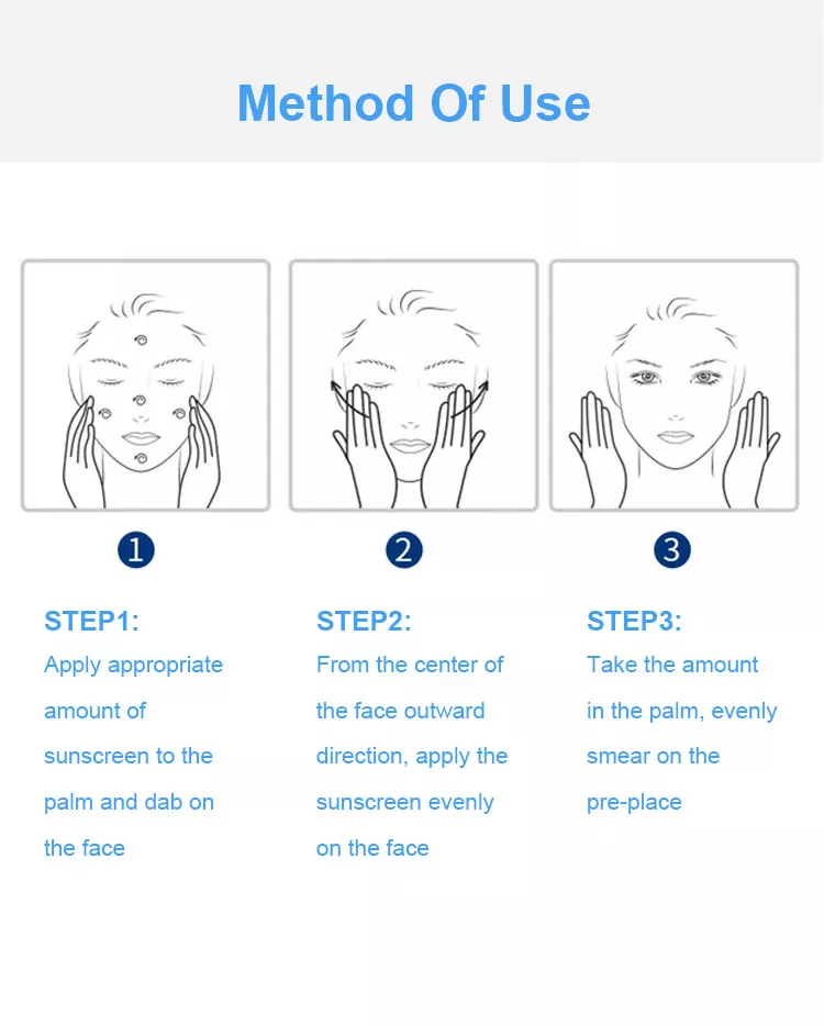 هنگام استفاده از ضد آفتاب باید مراقب بود که از بلع چشمی و دهانی خودداری شود، در صورتی که به طور تصادفی وارد چشم شد، باید بلافاصله با آب شسته شود. علاوه بر این، آرایش باید به موقع در شب پاک شود تا بار روی پوست کاهش یابد.